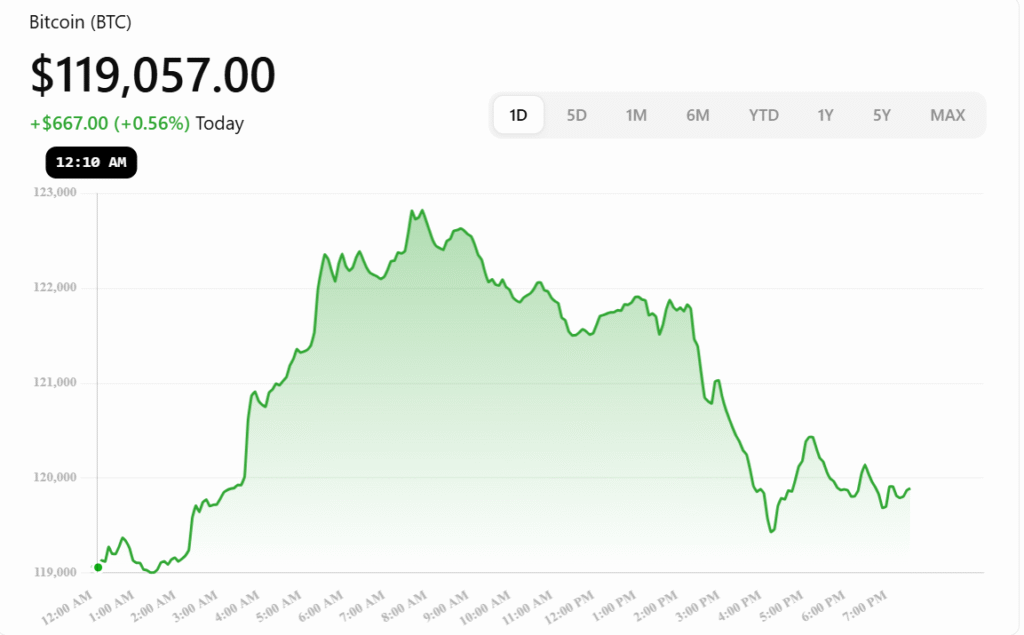 - Bitcoin: +29% YTD; pushing $120K–123K top side, supported by institutional inflows and upcoming U.S. crypto bills